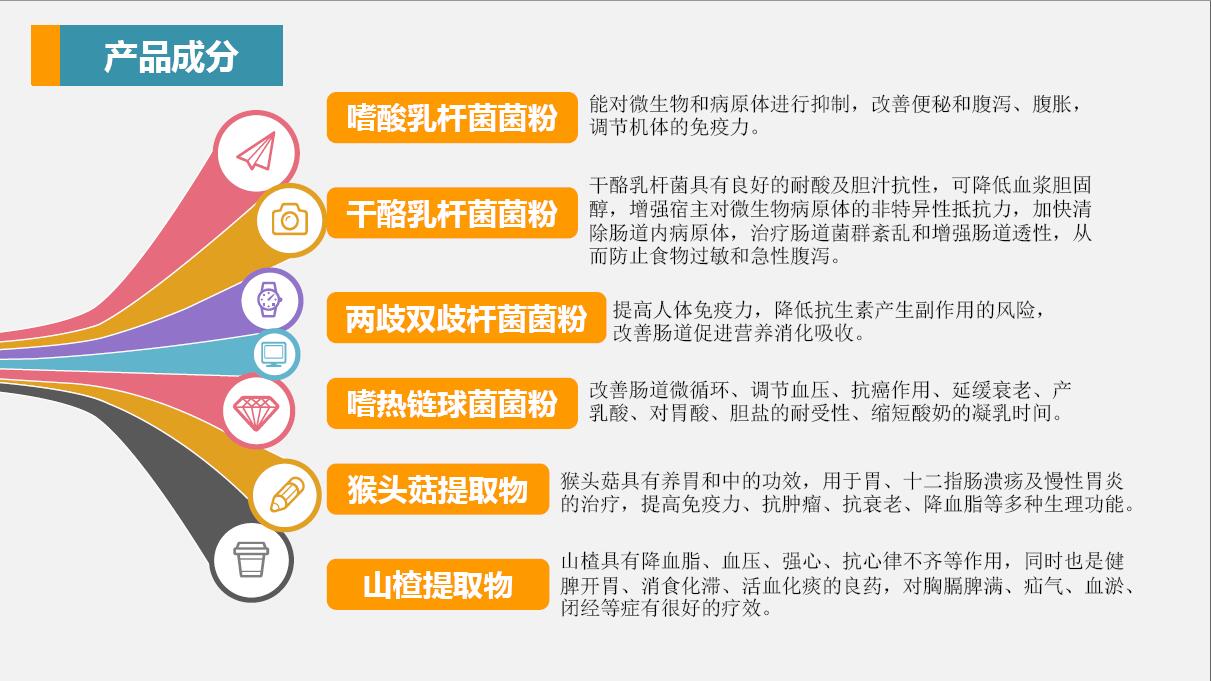 是雙乳桿菌和干酪乳桿菌等四種益生菌優(yōu)化組合的。協(xié)同共生,適合呢那種輕度胃粘膜損傷者和長(zhǎng)期口服抗生素而引起的。胃腸功能失調(diào)的人群,它可以使腸道內(nèi)的菌群恢復(fù)正常平衡,抵制腐敗菌的增殖,具有很好的營(yíng)養(yǎng)保健的作用。