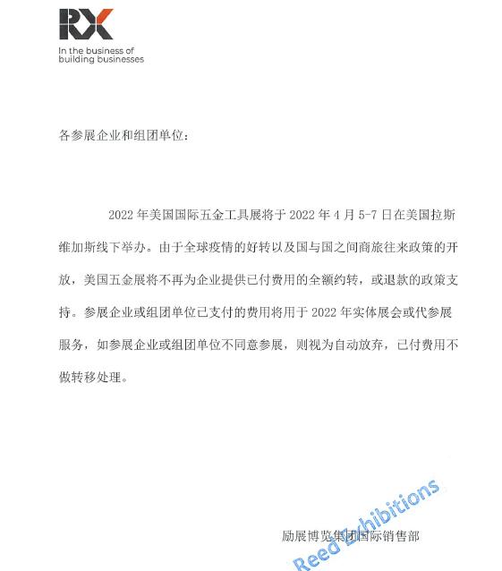 *2022美國五金展-疫前展位,不參展直接取消!不在順延!境外代參展人員緊張!