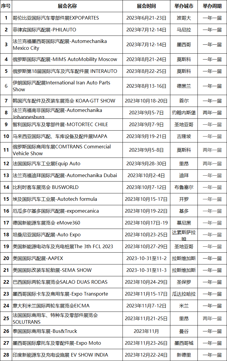 2023年全球國(guó)際汽配展會(huì)計(jì)劃表