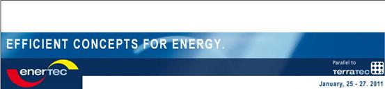德國萊比錫國際新能源展是歐洲地區(qū)專業(yè)的能源與環(huán)保技術(shù)展覽會,有德國著名的展覽公司德國萊比錫展覽集團主辦,兩年一屆。2011年將在enertec同期舉辦國際環(huán)保技術(shù)專業(yè)展覽(Terratec)。 兩個展會涵蓋了能源供應(yīng)和環(huán)保技術(shù)以及廢物回收利用等領(lǐng)域。展會得到了德國聯(lián)邦經(jīng)濟技術(shù)部(Bundesministerium für Wirtschaft und Technologie);德國生物源技術(shù)協(xié)會(Kompetenzzentrum Bioenergie e.V.);德國可再生能源利用促進會(VEE Vereinigung zur Förderung der Nutzung Erneuerbarer Energien e.V.)的大力支持。2009年展會展覽毛面積15000 m² (11 %的增長率),吸引了來自11個國家的237家展商 (4 %的增長率),超過90%的展商表達了參加 enertec 2011的意愿。來自49個國家的10941名觀眾(10%的增長率)參觀了展會,將近90%的觀眾確認在enertec上實現(xiàn)了參觀本展會的目的,專業(yè)觀眾所占比重:92%